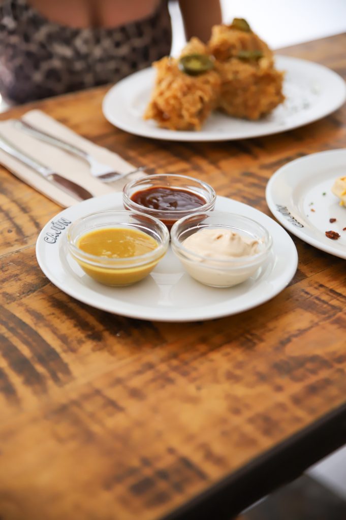 Aquí podrás probar todas nuestras salsas caseras —y si alguna te enamora, ¡también puedes llevarte a casa por un precio muy accesible!
